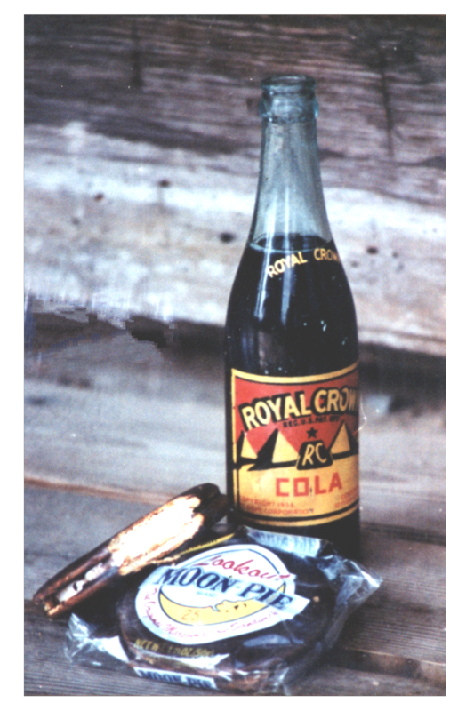 To make the RC Cola Float: Using a small glass (juice sized glass), add a spoonful of rich vanilla ice cream to the glass and pour RC Cola over it. Set glass on a plate dusted with Cocoa powder. Place the Moon Pie adjacent to it and garnish with a dollop of whipped cream and sprig of mint or seasonal flower.