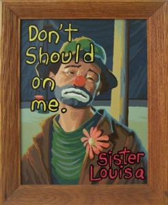 i put SISTER LOUISA pieces on my website, i put SISTER LOUISA pieces on my facebook and myspace pages, i donate SISTER LOUISA art about 20 times a year to anyone who needs it, and i participate in shows if i’m asked.