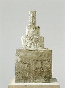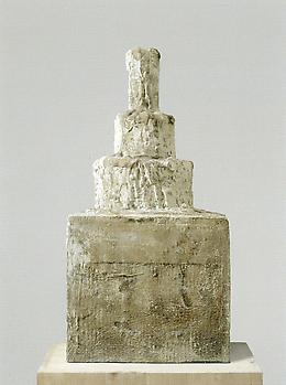Since 1946 Twombly has fashioned sculptures from everyday materials and objects, usually painted with white gesso. In 1979 he began casting some of them in bronze, thus unifying, preserving, and transforming them into cohesive wholes, independent from the original bricolages. The surface and patina of these cast bronzes evoke weathered artifacts that have been exhumed from the earth, an effect that is heightened in those that have been coated in white oil paint.