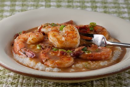 4. To serve, spoon the hot grits into shallow bowls. Top with shrimp and sauce. Sprinkle with chopped scallions.