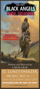 Now at St. Luke’s Theatre: Black Angels Over Tuskegee is the story of the Tuskegee Airmen told in narrative of six men embarking upon a journey to become pilots in the United States Army Air Forces. The play explores their collective struggle with Jim Crow, their intelligence, patriotism, dreams of an inclusive fair society, and brotherhood. The play goes beyond the headlines of the popular stories of the Tuskegee Airmen and exposes the men who exhibited the courage to excel, in spite of all the overwhelming odds against them. (source)